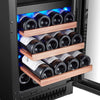 Die obere Zone bietet Platz für 10 Flaschen und kann zwischen 5 – 12 °C eingestellt werden, während die untere Zone 18 Flaschen bei 10 – 20 °C aufnehmen kann. Die vollverglaste Designtür mit UV-beständigem Glas und Edelstahlgriff schützt den Wein vor schädlichem Lichteinfluss und unterstreicht das edle Erscheinungsbild.