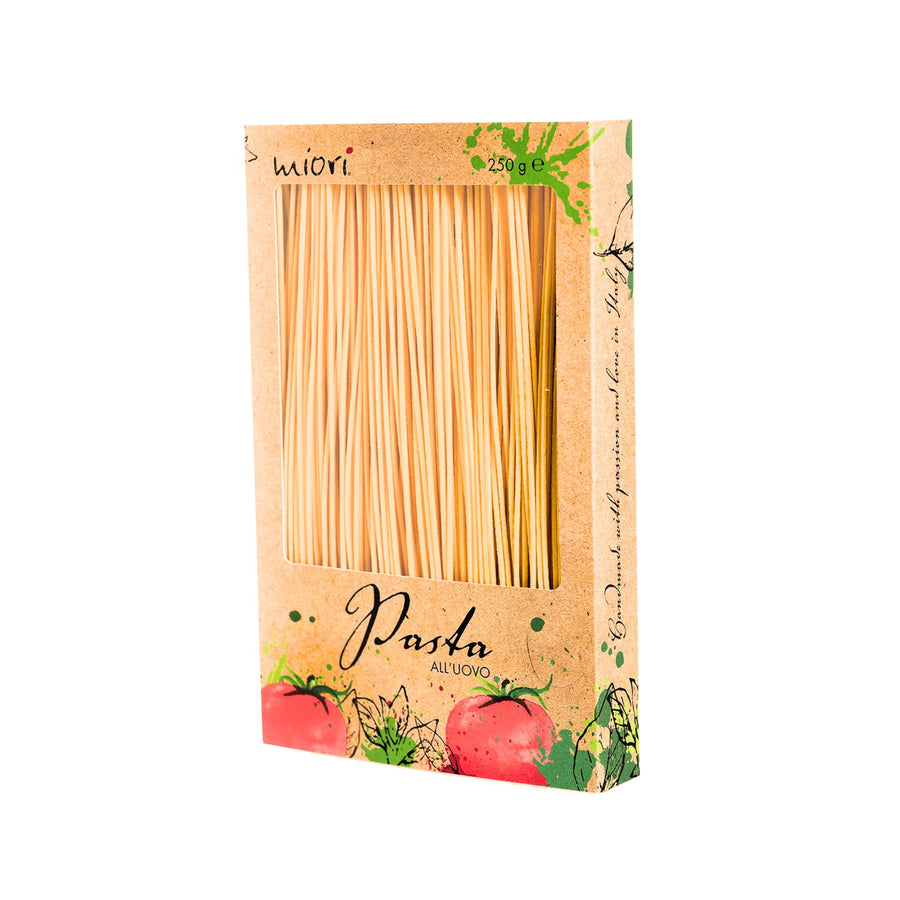 Tauchen Sie ein in die Aromen Italiens mit unseren handgemachten Miori-Nudeln. Diese exquisite Pasta wird mit Liebe und Sorgfalt aus ausgewählten Zutaten gefertigt, um Ihnen ein unvergleichliches Geschmackserlebnis zu bieten. Ihre zarte, leicht poröse Textur nimmt Saucen perfekt auf und entfaltet dabei ihren reichen, unverwechselbaren Geschmack.
