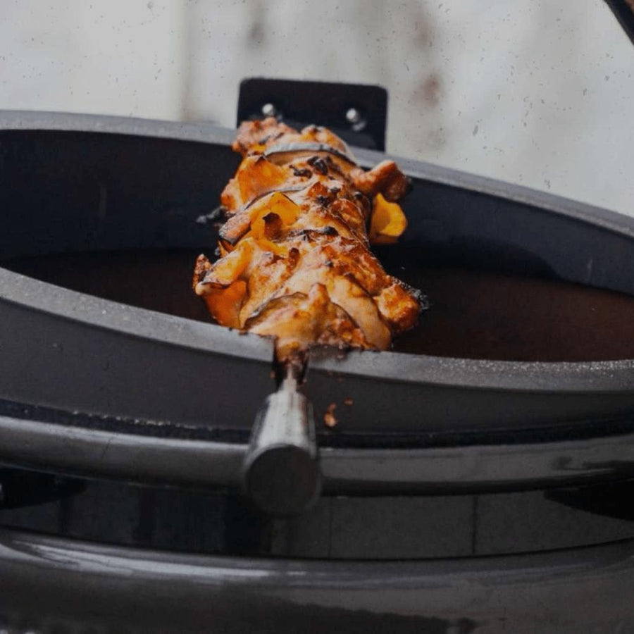 Revolutionieren Sie Ihr Grillerlebnis mit dem Spit on Fire Large (21") Rotisserie-Spieß- dem innovativen Drehspiess-System aus hochwertigem 304er-Edelstahl.